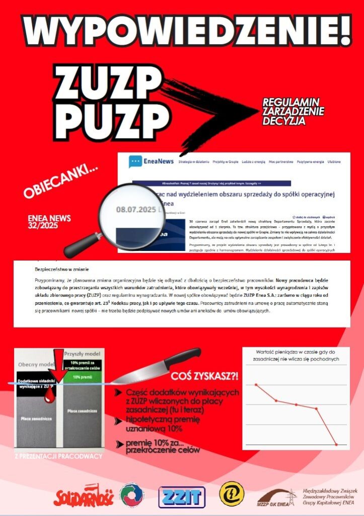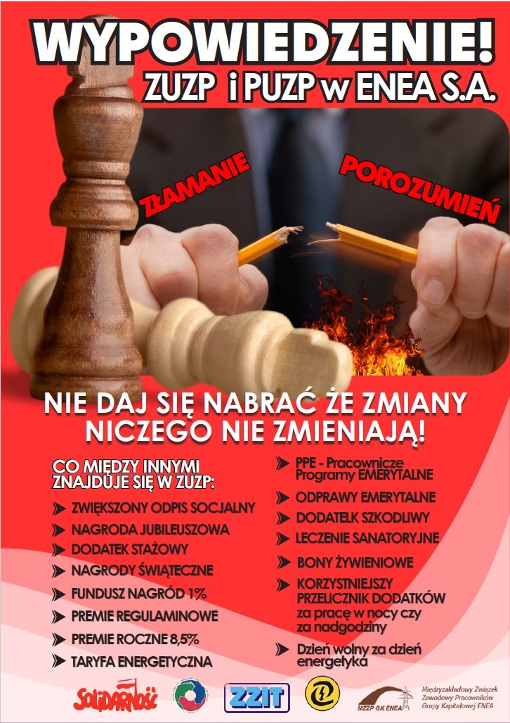 - wypowiedzeniu Zakładowego Układu Zbiorowego Pracy w Enea S.A.,